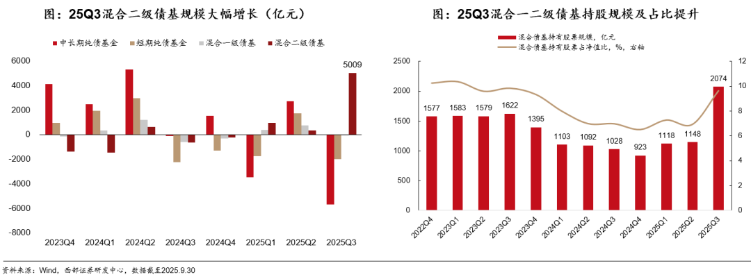 固收+基金获大量资金流入,25Q3单季度混合二级债基规模增长超5000亿元。