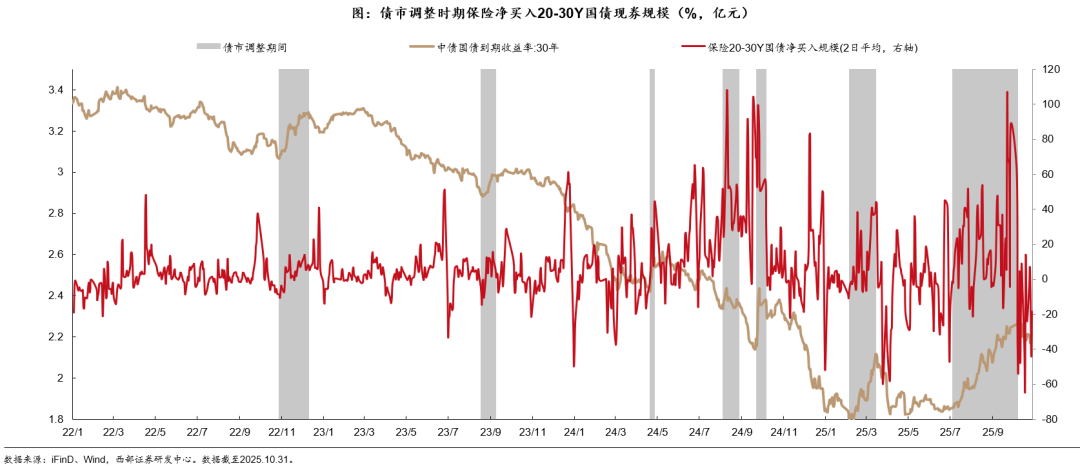今年利率陡升时期(如:2月中旬-3月上旬、7月以来),保险的承接力度相比于2024年全年并不算高,尤其较24年“924”之后的调整期而言偏低。